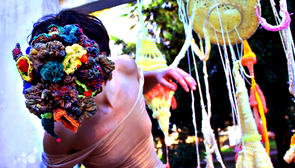 Laura Acosta is a Colombian-Canadian transdisciplinary artist that uses textiles and performance as a way to observe the power that a body has to claim, create, alter, or disrupt spaces. Her work revolves around creating absurdist audio-visual compositions that integrate unscripted movement, textile structures, and experimental sound, as a way to explore themes of identity, representation and belonging.