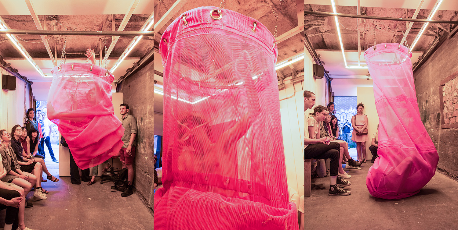 Laura Acosta is a Colombian-Canadian transdisciplinary artist that uses textiles and performance as a way to observe the power that a body has to claim, create, alter, or disrupt spaces. Her work revolves around creating absurdist audio-visual compositions that integrate unscripted movement, textile structures, and experimental sound, as a way to explore themes of identity, representation and belonging.