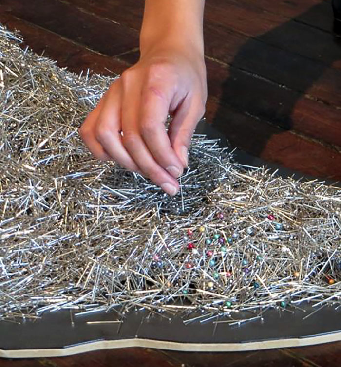 Textiles—and other sewing elements—are a fascinating sculptural material, with innumerable formal advantages and great interpretative strength. Clothes are strongly connected to dominant values through a normative fashion system. We all experience and read them symbolically, connecting individual knowledge with culturally produced ideas. Dress can be effectively used in art to address not only personal, but historical, political, cultural, and social issues, providing new and stimulating ways to undress some aspects of our circumstances that usually remain veiled.