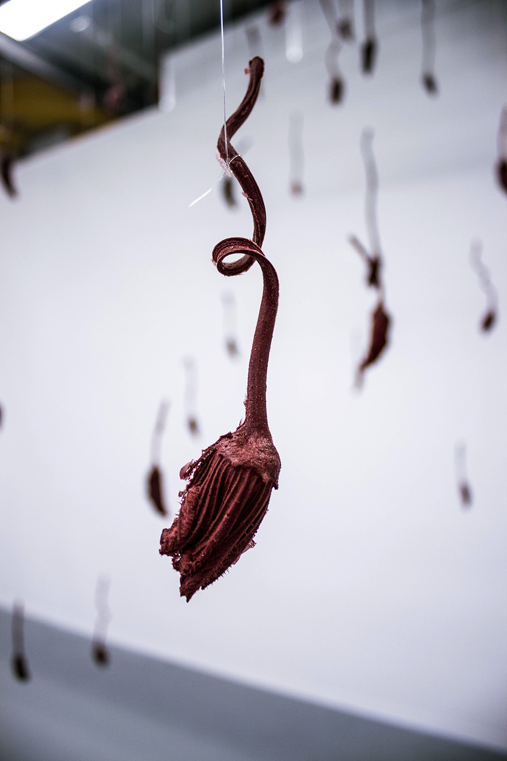 Son travail artistique se concentre sur les conséquences de ces derniers sur notre santé psychologique et physique. Son processus créatif est une réflexion autour de la matérialisation des états psychologiques et des enjeux identitaires résultant de cette confrontation intérieure animer par ces héritages psychiques. L’artiste tente d’exposer la vulnérabilité qui habite chaque individu et de montrer la complexité humaine au travers d’expériences émotionnelles.